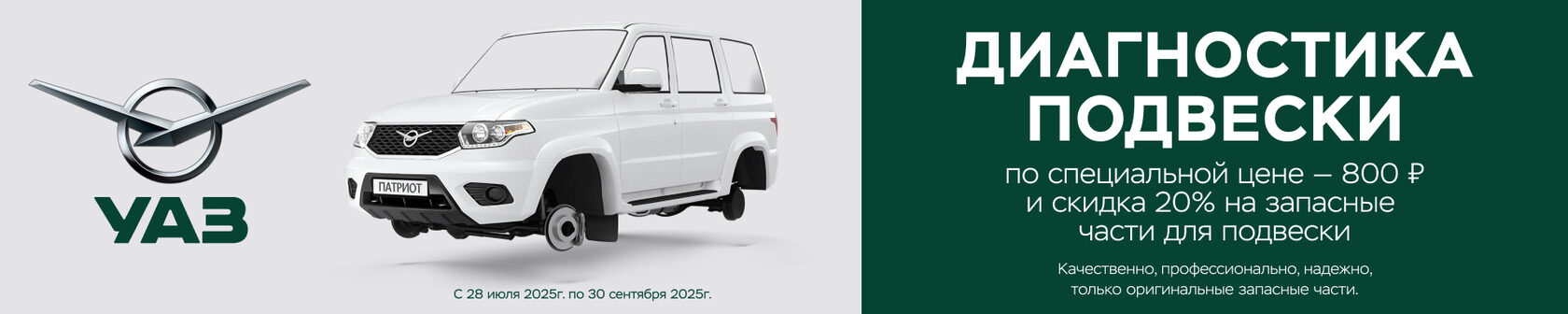 Акция рассчитана на всех владельцев автомобилей УАЗ. Подробности акции уточняйте в дилерском центр: +7 (831) 233-01-11